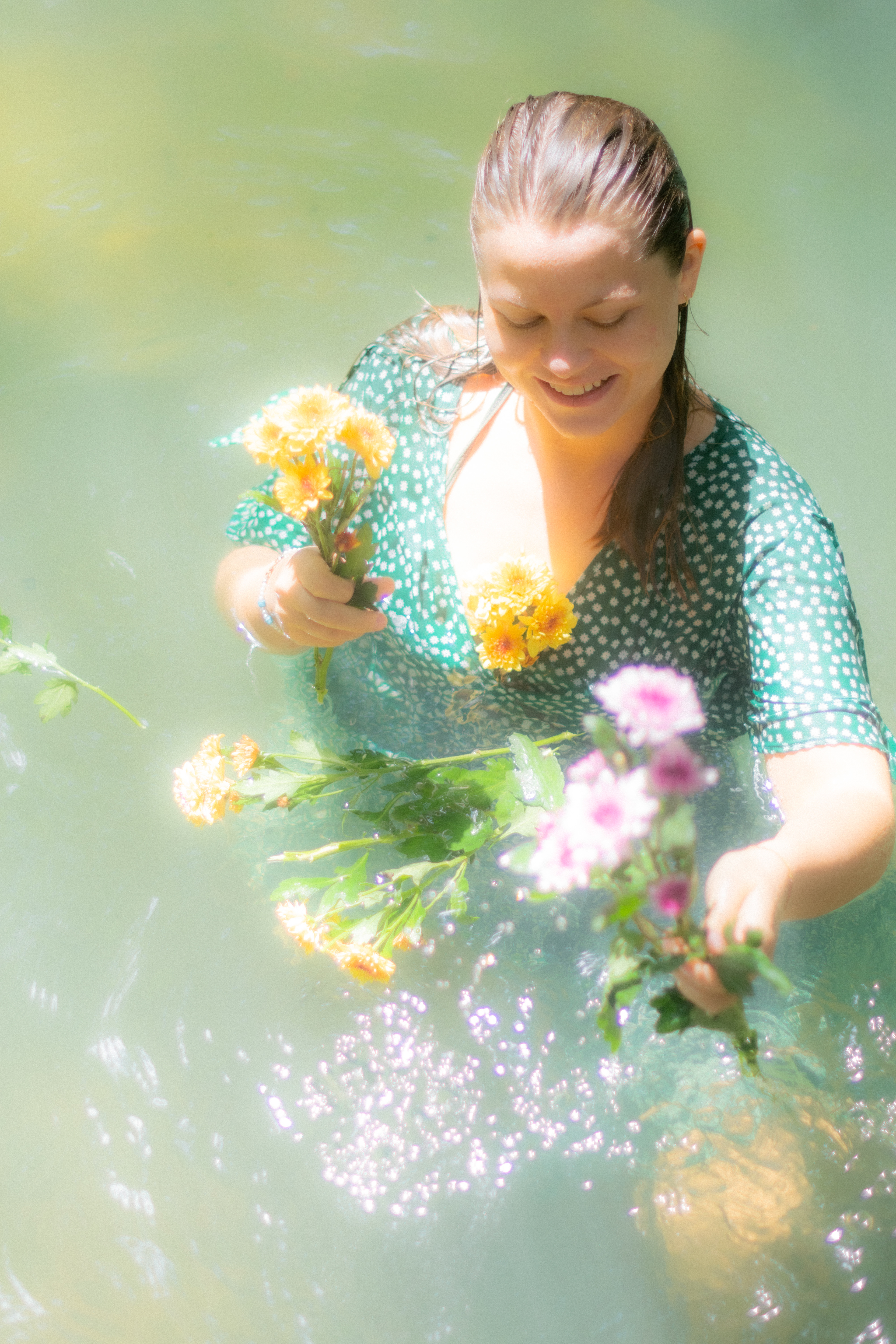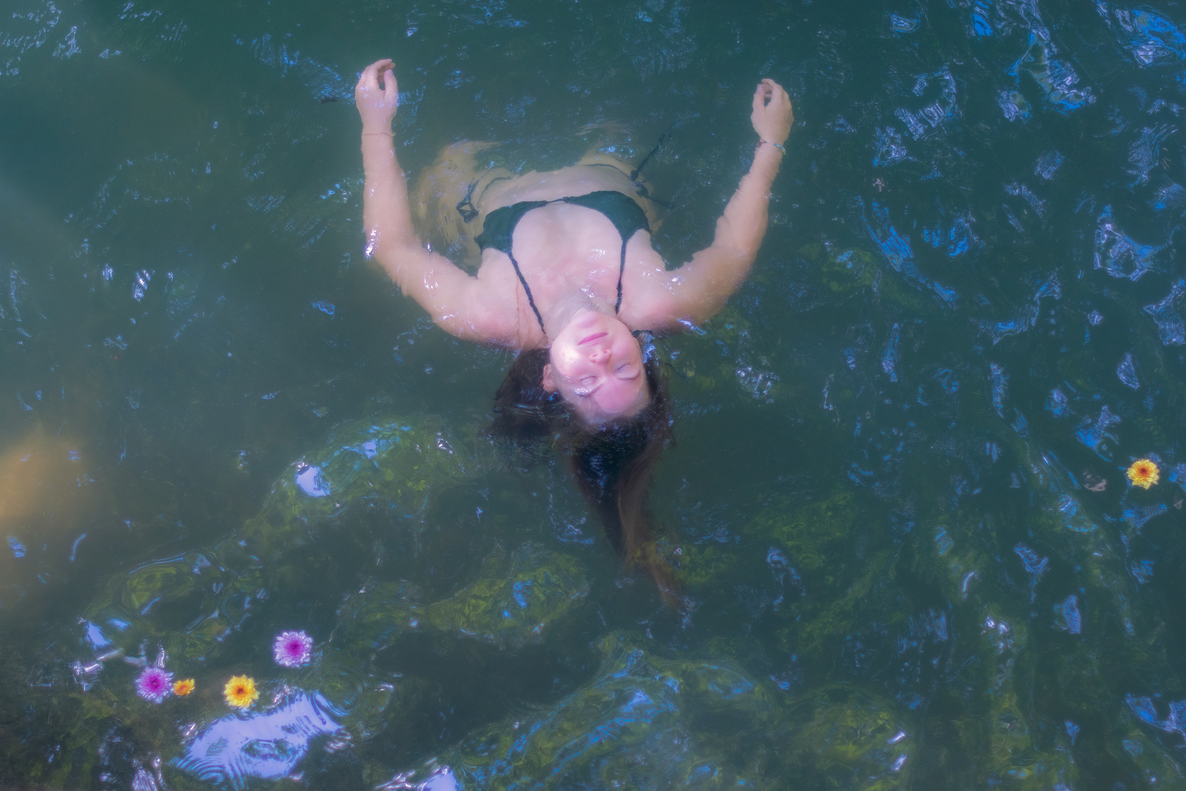 The almost ritualistic gestures invite us to remember that pleasure can be gentle, that the body can be a garden, that floating is also a form of healing. The feminine presence merges with the vegetal, with the liquid, with time frozen.